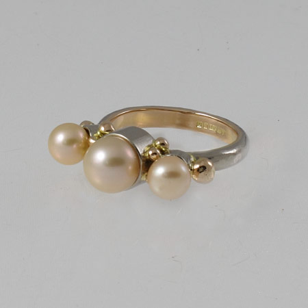 • Three cultured pearls with a pink glow