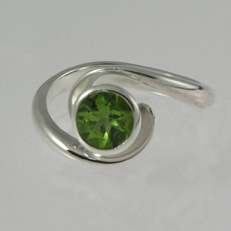 Silver and peridot flowing ring