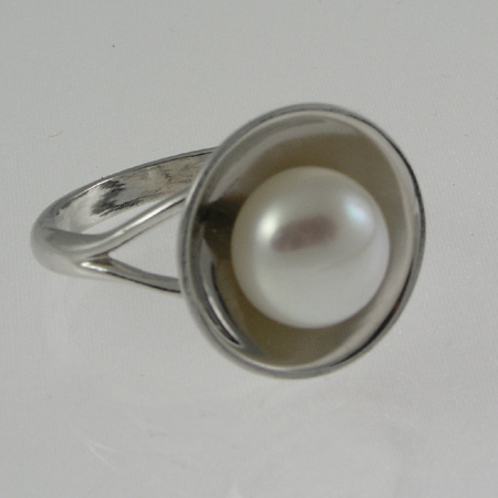 Bouton cultured pearl silver ring