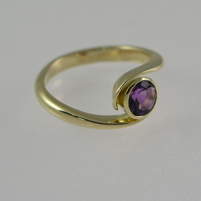 Hand made gold Wedding Ring. A fitted wedding and engagement ring. Silver wedding ring with inset amethyst.