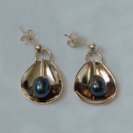 Handmade Earrings. A pair of gold custom made earrings with inset pearls.