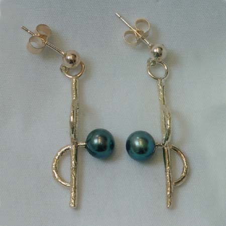 Handmade Earrings. A pair of gold custom made earrings with inset pearls.