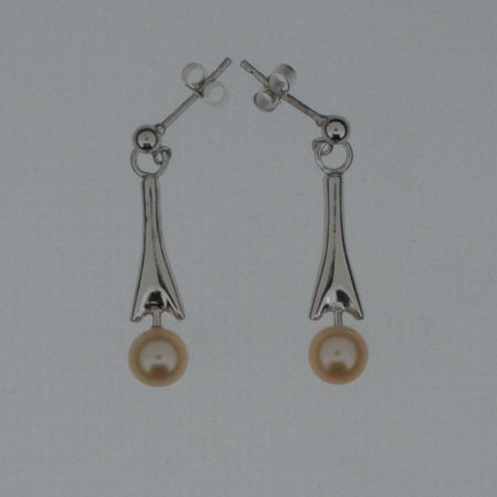 Handmade Earrings. A pair of gold custom made earrings with inset pearls.