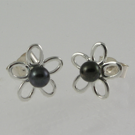 Bespoke Brooches. Hand crafted crusted silver brooch, inset black pearls.