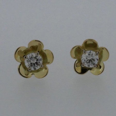 Handmade Earrings. A pair of gold custom made earrings with inset pearls.