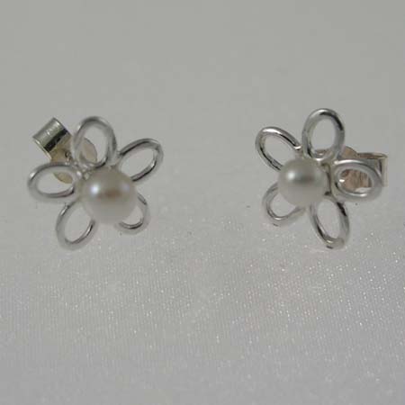 Handmade Earrings. A pair of gold custom made earrings with inset pearls.