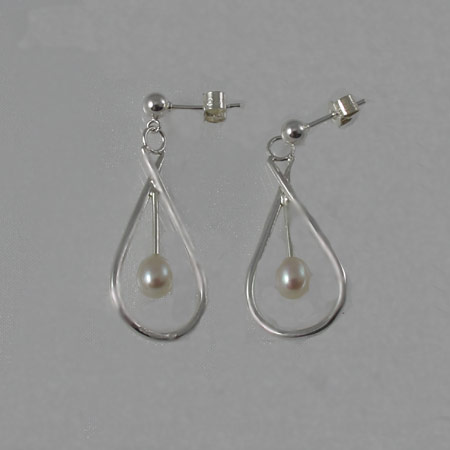 Handmade Earrings. A pair of gold custom made earrings with inset pearls.