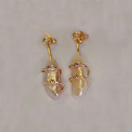 Handmade Earrings. A pair of gold custom made earrings with inset pearls.