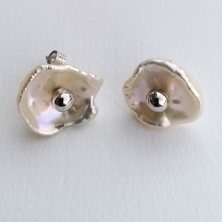Handmade Earrings. A pair of gold custom made earrings with inset pearls.