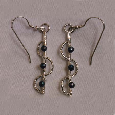 Handmade Earrings. A pair of gold custom made earrings with inset pearls.