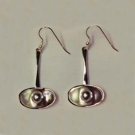 Handmade Earrings. A pair of gold custom made earrings with inset pearls.