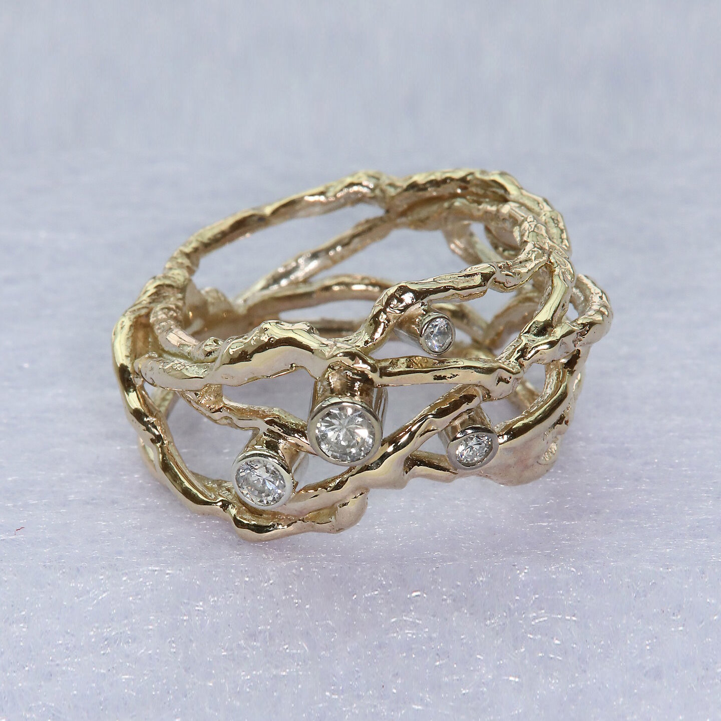• 9ct reticulated yellow gold white gold settings