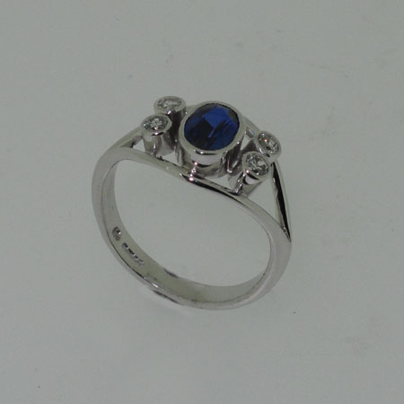 Gold, sapphire and diamond engagement ring
