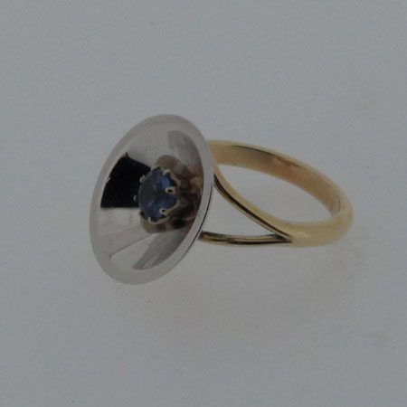 Elegant Hand made Rings. A bespoke gold ring with two blue inset jewels.