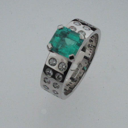 Emerald, diamond and white gold dress ring