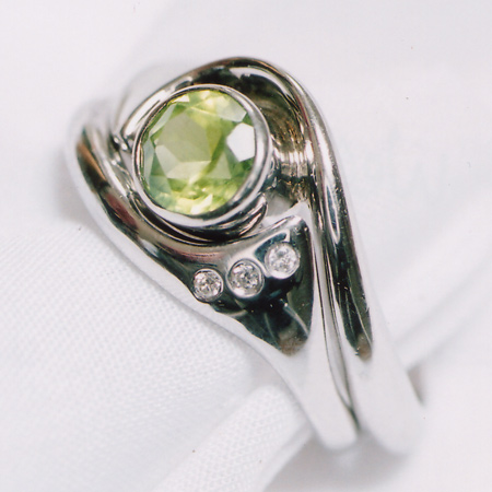 Bespoke peridot engagment ring and fitted wedding ring